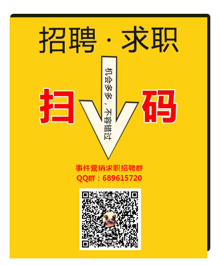 找事件营销求职招聘QQ群,有需要的朋友可以加入,本群会不定时发布一些招聘信息,正在找工作或者有意向换工作的朋友可以加入,也可以互相推荐,企业招聘者需要实名认证,所发布信息必须合法、真实、有效,凡是没有实名认证的一律T出本群,为求职者提供一个安全信得过的平台~~谢谢